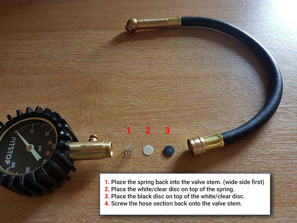 5. Once all dust has been removed from inside the valve stem, replace the three internal elements as shown in the diagram. It is important that these are replaced in the same order they were positioned initially.